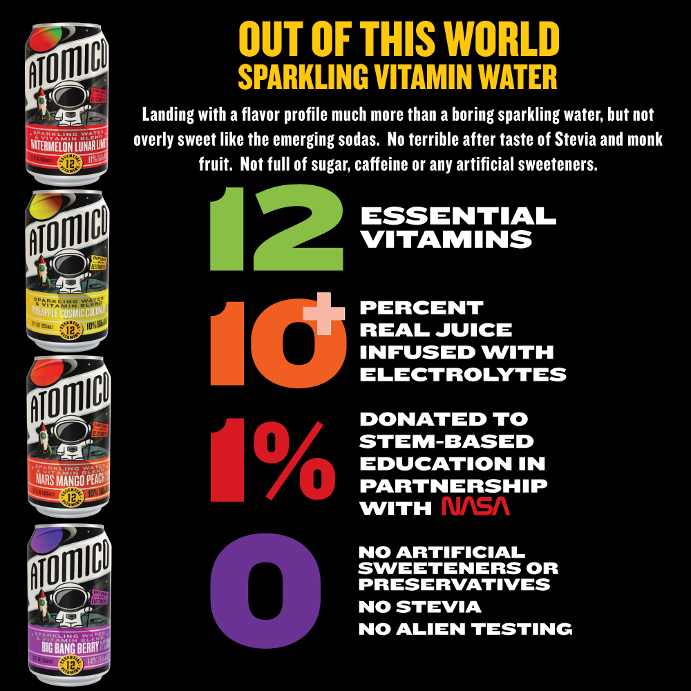 Embrace the Sparkling Space Revolution - Try ATOMICO® today and witness the perfect fusion of taste and wellness. Take advantage of our fun, engaging approach at sharing Space and science education across our social media channels.